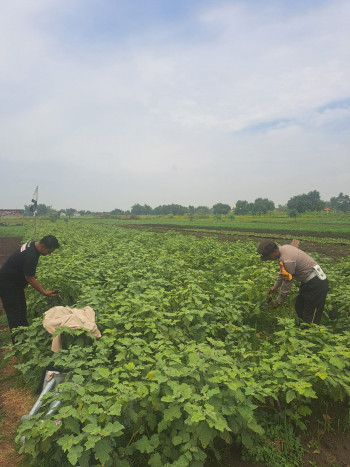 Bhabinkamtibmas Gampingrowo Dampingi Petani Terong, Cari Solusi Percepat Panen di Lahan Ketahanan Pangan