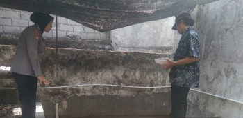 Dukung Ketahanan Pangan, Kanit Binmas Polsek Waru Tinjau Budidaya Lele di Lahan Fasum Desa Wedoro