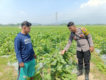 Polsek Krembung Dukung Ketahanan Pangan, Dampingi Perawatan Tanaman Melon di Desa Keper
