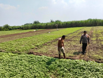 Kanit Binmas Prambon Patroli Sambang Petani Dukung Ketahanan Pangan